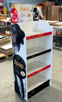 Оперативное производство нагруженных товаром стоек/препаков, которые доставляются от склада поставщика до конечной точки продажи.